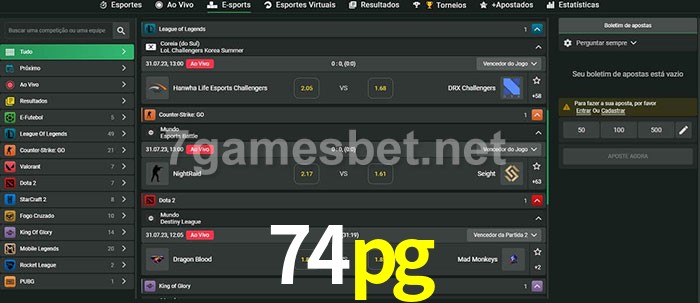 A aposta 74pg oferece aos jogadores a experiência mais conveniente de apostas em eSports!